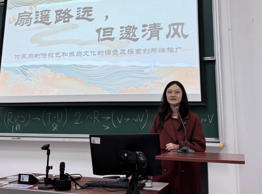 德语系项目以“扇遥路远,但邀清风”为主题,围绕苏扇非遗立项展开。吴紫坤学姐分享了选择指导老师与非遗项目运营的经验,强调线上与线下调研结合,在做好市场调查的基础上,针对非遗项目进行切实可行的线下探店与采访。