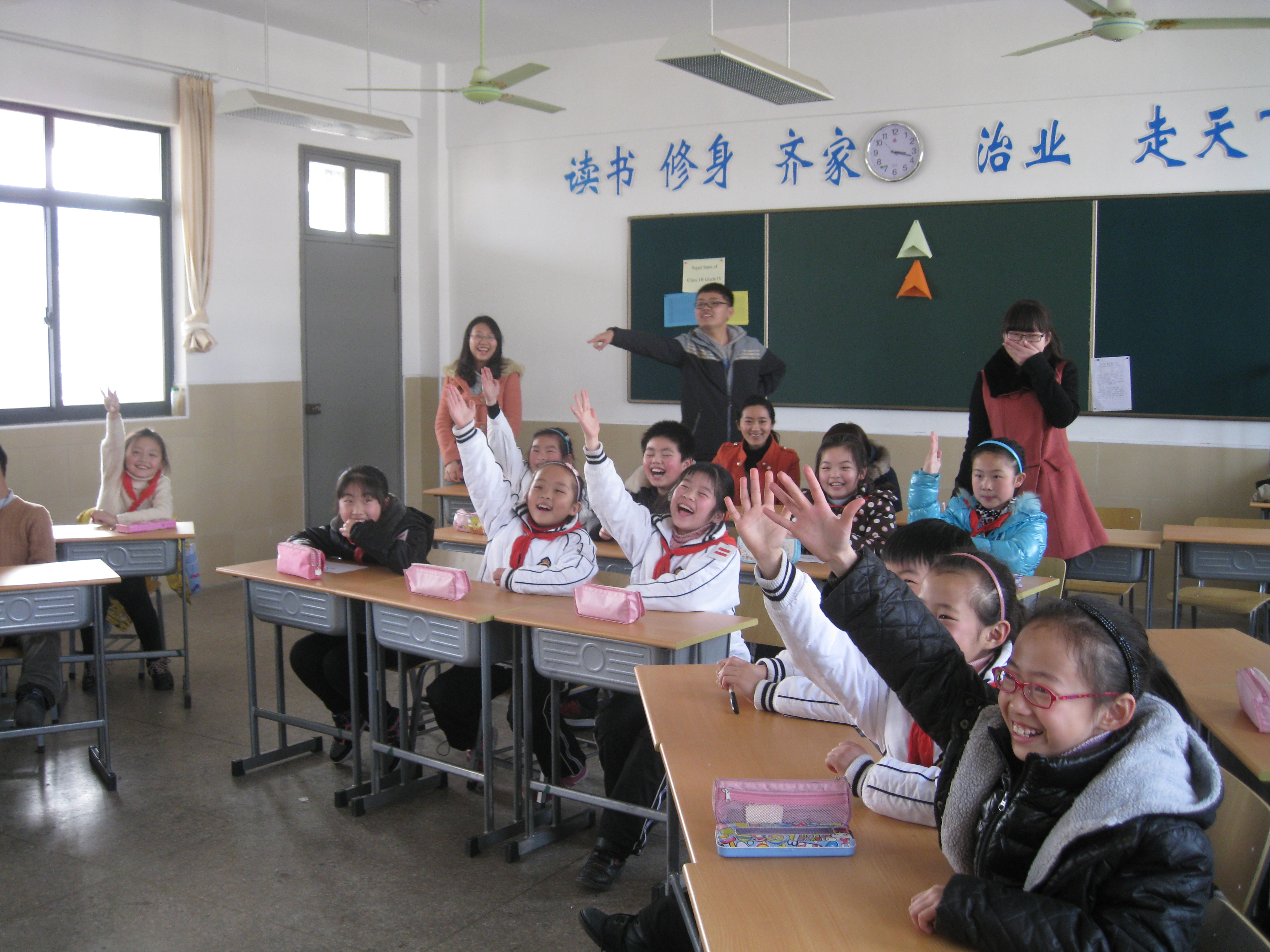 怀着一丝忐忑,几分期待,队员们迈入教室,并按计划简单布置了一下。还未到上课时间,就已经有小朋友踏入教室,瞪大了眼睛好奇地望着陌生的小老师。在上课中,小朋友们表现出了聪明伶俐,他们通过老师们的表情和动作,马上就猜出老师所讲法语的含义;对简单的法语句型也是一点就通,一节课的内容很轻松地就已掌握。小朋友们的接受和模仿能力让小老师十分惊喜,他们活泼的个性和对法语的极大兴趣也深深地感染了义工队的队员们。