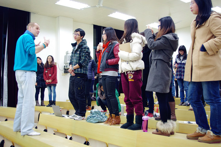 多朗德先生还鼓励同学们尽量多地参与到艺术活动中,无论是绘画、音乐、戏剧、写作还是舞蹈。“当你真正投入到艺术中时,你便不再受感官的束缚,而是能达到一种更高的境界,领略到上帝的旨意。”在讲座的最后,多朗德先生还让我们重现了《死亡诗社》中的经典场景,大家都一起站到桌上,感受完全不同的视角所带来的全新感受。
