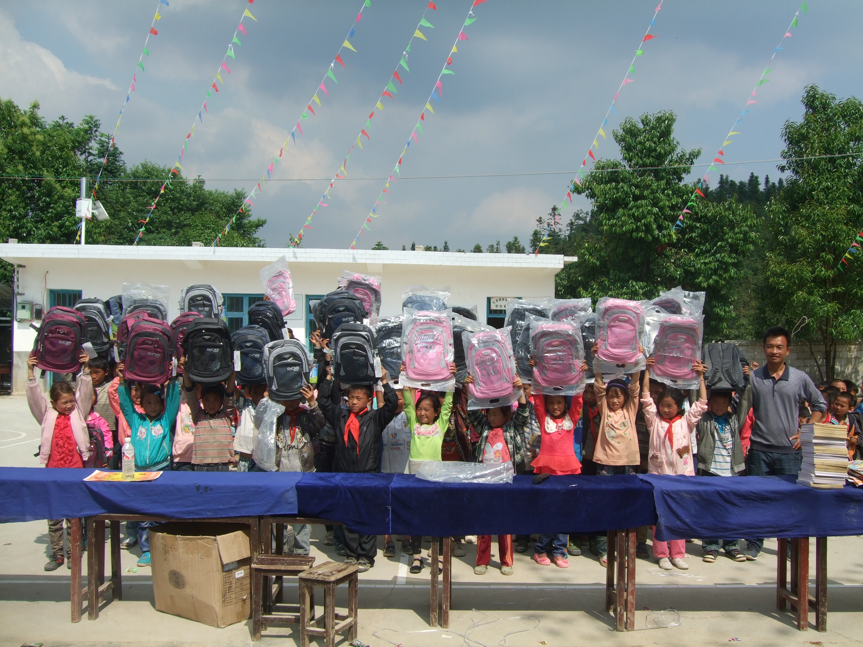爱心遥寄,传往大山深处——贵州黔西南州望谟县打易镇新场小学。六一儿童节前夕,我系寄出了使用部分捐款购买的物品——书包50只,文具盒45个,作为给孩子们的儿童节礼物。
