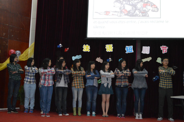 改编的最高潮当属大二四班的《白雪公主奇遇记》,同学们大胆的反串不仅笑料十足更是凸显了出众的演技。当王子遇上为救猎人的女友而死去的公主,一曲深情的歌曲不仅使公主起死回生,更让观众痴迷。这样大胆的改编不仅考验了同学们的演技,更是对同学们法语水平的考验。最终大二四班不负众望,夺得第一。