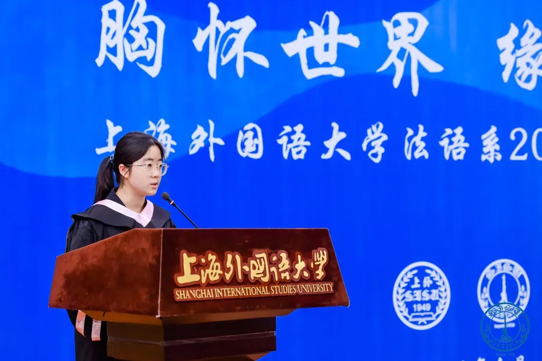本科生代表李在遥回顾了四年法语学习中点滴积累的过程与成长的瞬间,并表达了将所学所思转化为前行动力、勇敢迎接未来挑战的决心。研究生代表孙文青分享了研究生阶段潜心学术、拓展视野的体会,娓娓道来之间饱含对师长耐心指导与同窗相伴同行的深切感激。