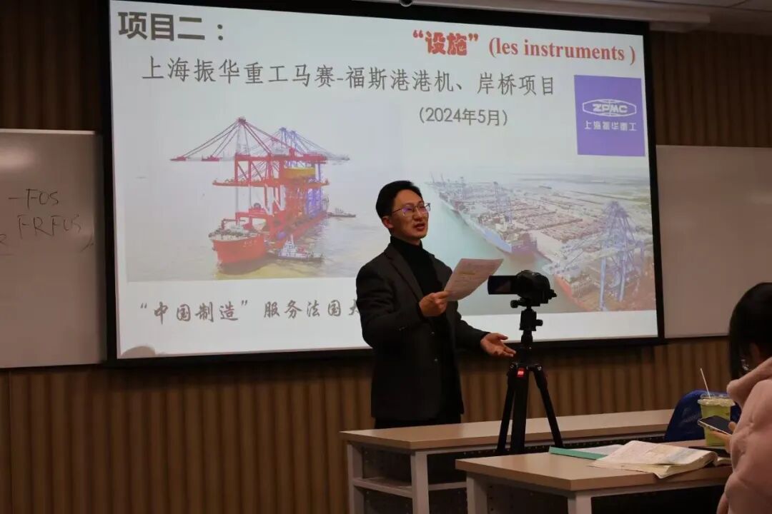 在专业教学环节,刘老师介绍法国普罗旺斯-阿尔卑斯-天蓝海岸大区(Provence-Alpes-Côte d’Azur)的历史由来、产业架构及风土人情,并从马赛“旧港”到“新港”的演变入手,突出“马赛-福斯港”(Marseille-FOS)作为法国和地中海第一大港的战略地位,为讲述中、法两国在“大马赛港”建设中的合作做好铺垫。