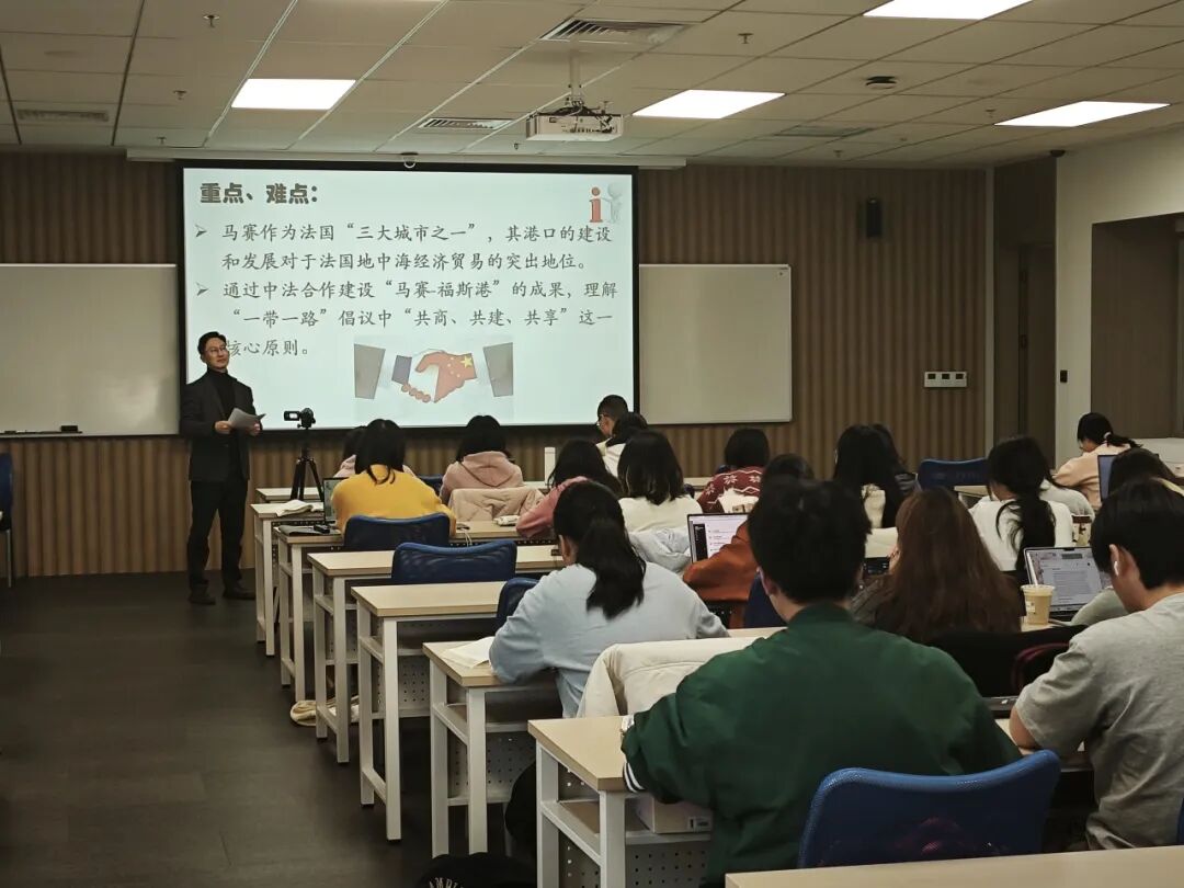 本次公开课以“‘一带一路’视角下中、法两国港口合作成果与展望”为主题,结合专业教学内容,引入中、法两国在港口建设及远洋航运领域合作成果,从而使学生全面、深入地理解“一带一路”倡议核心原则。