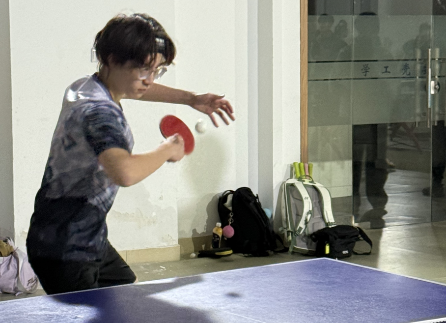 面对强劲对手,我系乒乓球队见招拆招:侧身反拉迅如闪电,正手扣杀果断有力,近台快推灵活刁钻——每一板,都彰显着技术的纯熟与敢打敢拼的锐气。