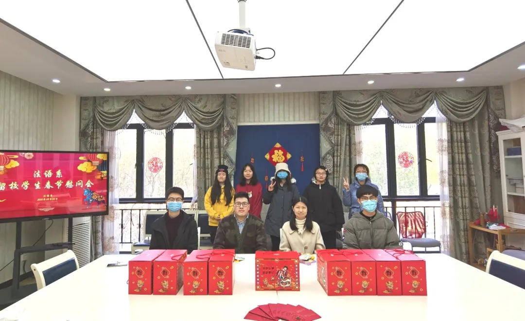 202126日上午,法语系留校学生新春慰问活动在松江校区242会议室举行。法语系党总支书记忻炯俊、副书记陈雪莲、辅导员颜姝婷参与本次慰问,为留校学生送上浓浓暖意。