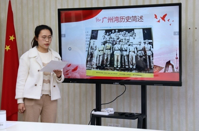 积极分子吴容同学以“党史学习之寻访广州湾记忆”为题进行了分享,介绍了湛江曾作为法租界的过往,展现了时代背景下地方红色文化的传承与发展。