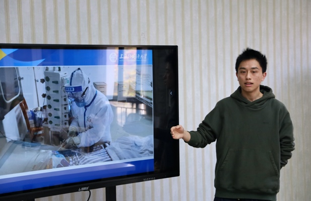 积极分子胡雅欣、陈思多两位同学以“社会主义发展史中的时代楷模”为题进行了分享,聚焦现役军人和疫情前线的医护人员,展现出了时代楷模们不忘初心、牢记使命的家国担当。