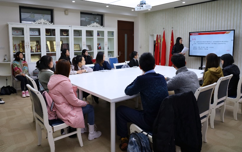 2021316日,法语系分党校在242会议室召开第四期入党积极分子培训班优秀党员分享会,17级邱喆倩同学应邀做优秀党员分享。法语系党支部副书记陈雪莲和法语系辅导员颜姝婷出席本次分享会