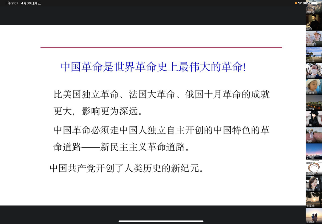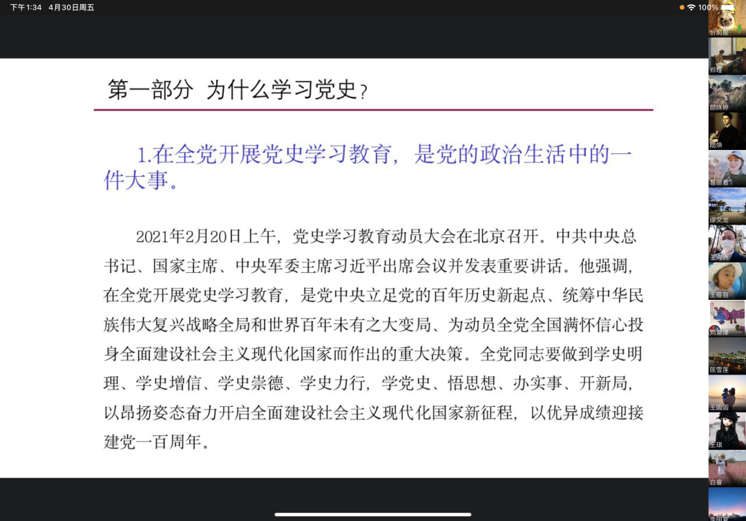 4月30日,法语系教工党支部以语音会议形式召开“赓续论坛”教工党课“开讲啦”第二讲,系党总支书记忻炯俊为支部党员做主题为“学习百年党史,赓续红色初心”党史学习专题报告。