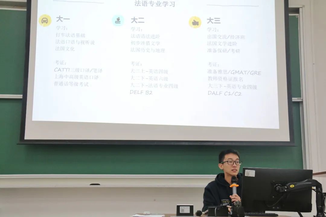接下来,王辉宁学长向同学们毫无保留地分享了他法语语言文学推免的详细经历。