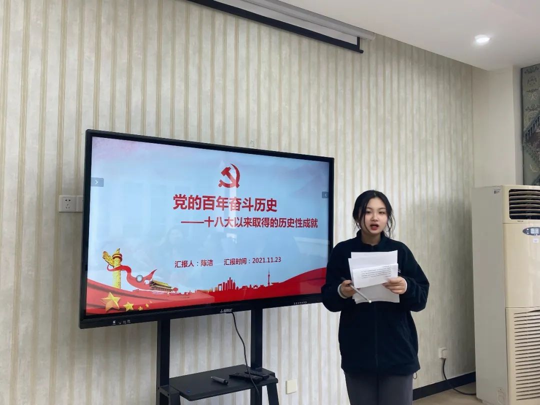 分享结束后,支部党员交流了学习心得体会,大家纷纷表示:十九届六中全会总结了我党百年奋斗的重大成就和历史经验,在过去的一百年,党向历史、向人民交出了一份优异的答卷。作为新时代大学生,应当始终紧紧跟随党的步伐,关注党的发展建设和国家的发展命运,将自己融入时代发展的大潮;不断提升政治素养、努力学好法语专业知识,用实际行动和优异成绩为早日实现伟大的“中国梦”贡献一份力量。
