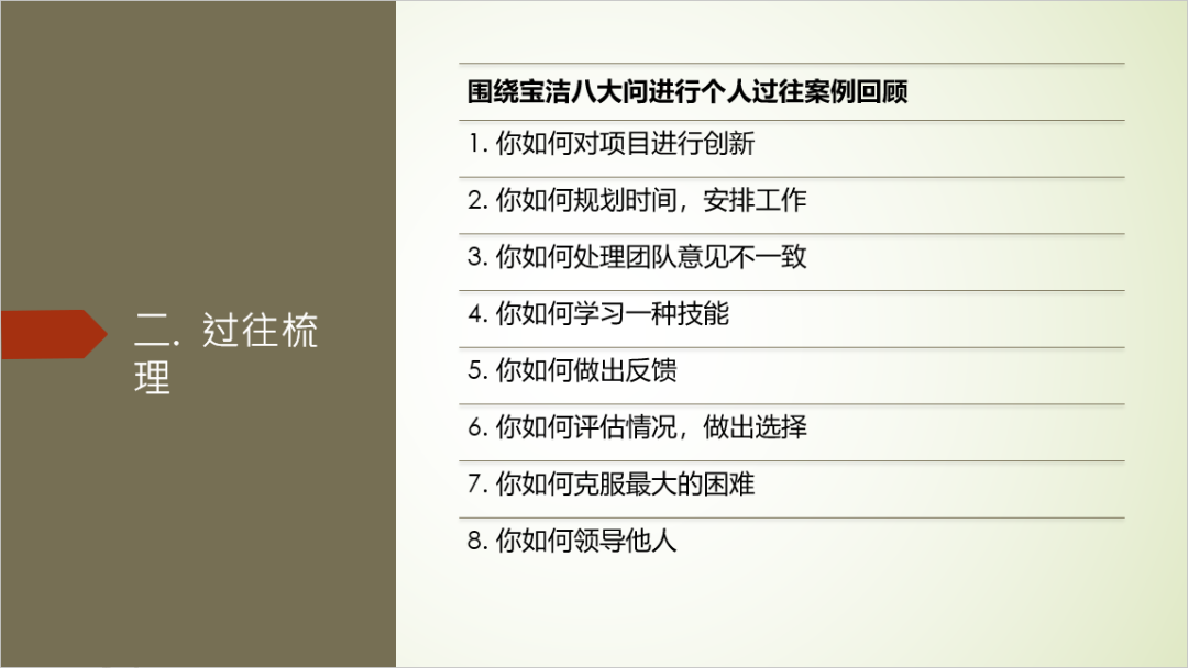 管清淳学长为我们介绍了简历制作的步骤。简历的制作建立在自我认知和过往梳理的基础上,大家可以围绕“宝洁八大问”进行个人过往案例回顾,并运用“STAR法则进行叙述。在简历模板的选取上,应当遵循内容分区叙述简洁亮点突出以及色彩均衡的基本原则。