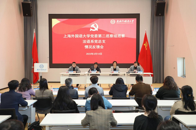 上海外国语大学党委第二巡察组有关同志,党委组织部、纪委办公室、党委宣传部、党委教师工作部、党委巡察工作办公室负责同志、法语系领导班子成员出席会议;教职工代表列席会议。