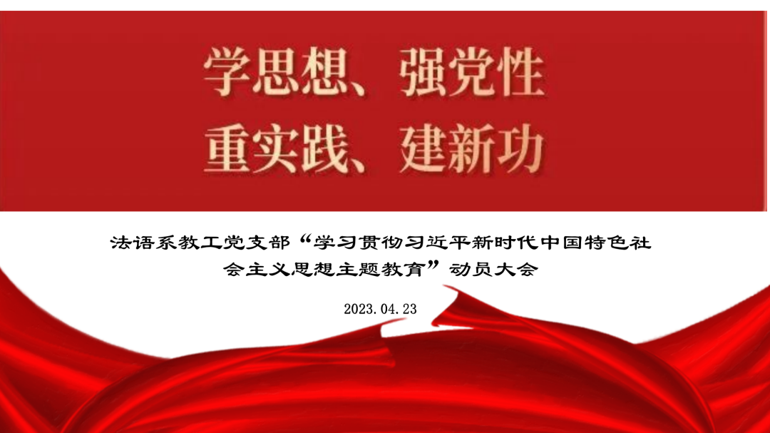 深入开展学习贯彻习近平新时代中国特色社会主义思想主题教育是全面贯彻党的二十大精神的有力举措和深入推进新时代党的建设新的伟大工程的重大部署。为贯彻落实上级党组织关于主题教育的部署和安排,法语系教工支部于4月23日晚召开线上全体大会,对开展主题教育进行动员部署并举行专题党课。