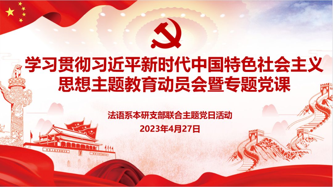 4月27日晚,我系党支部召开了主题党日活动。活动中,与会同学围绕主题教育、中国发展、中法关系、党的领导与使命担当等关键词展开讨论。通过活动与讨论我们认识到,中国与法国共同发展携手共进,青年人大有可为大有作为;中国发展迅速,为世界经济作出了积极贡献;中国将进一步保障改善民生,促进社会和谐,转变经济发展方式,彰显中国的务实和远见。在中国共产党的带领下,中国的发展成就突飞猛进。作为跨融通的外语专业人才,我更要学好专业知识和政治理论,为我们的祖国的发展、为人类命运共同体的构建奋斗终身。