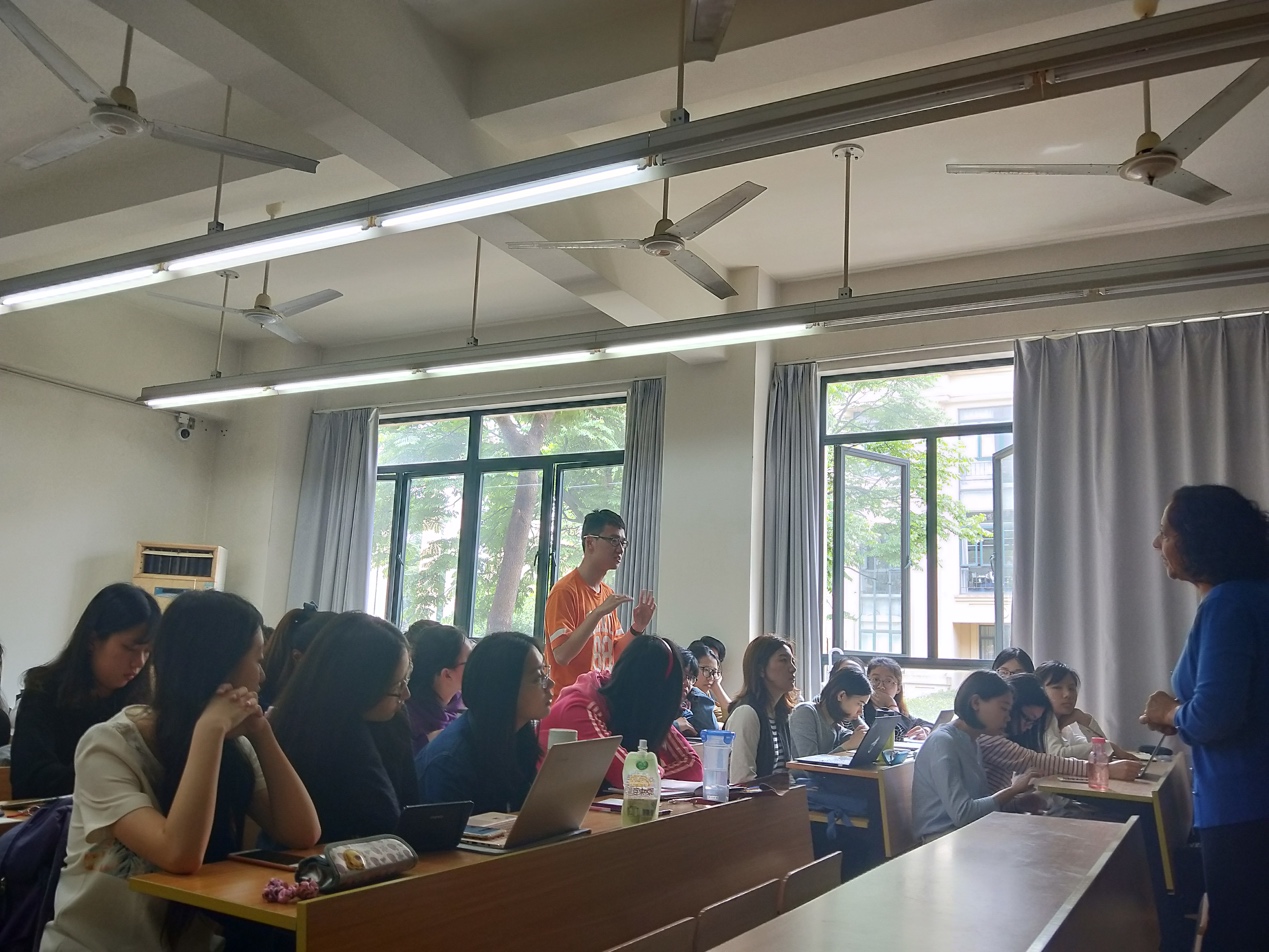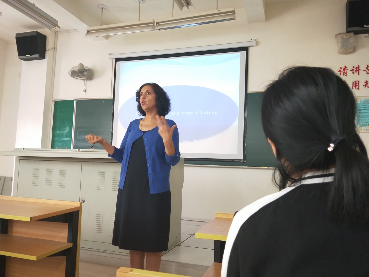 活动伊始,Samira Belyazid教授对同学们的到来表示热烈欢迎。Samira Belyazid女士是麦克敦大学教育与文学中心主任,主要教授语言学、符号学、人类学和人种学等课程,研究方向为语篇分析、媒体话语分析、话语的己性与他性等。Samira Belyazid女士现在上海外国语大学讲学,为本科生们和博士生们授课。