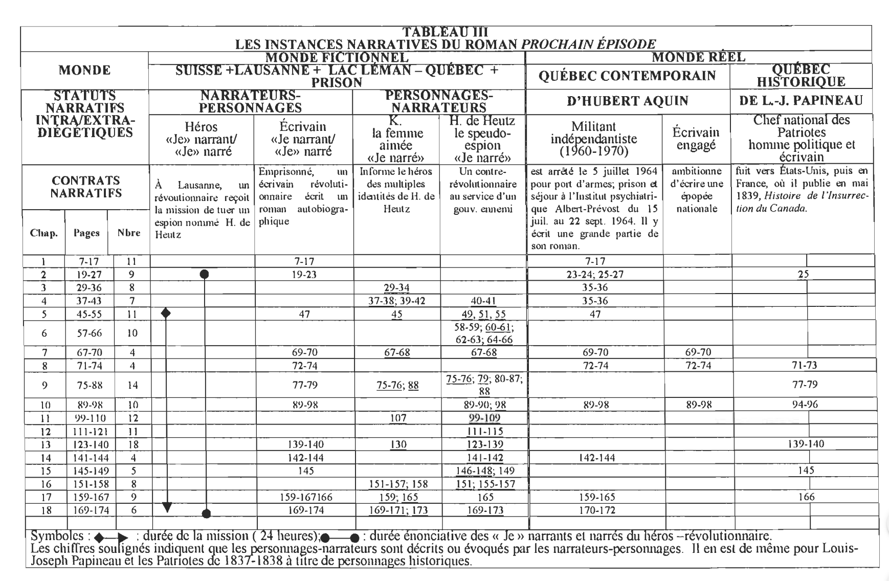 102 CARON, Sylvie, « Le désir épique dans le roman Prochain épisode d’Hubert Aquin », mémoire de master, Université du Québec à Trois-Rivières, 1999, p. 62.