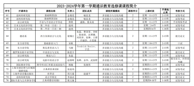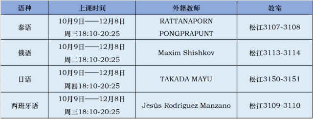 通识选修中的外语课程是另一个更加深入学习语言的渠道,本学期就开设了涵盖韩国语、日语、泰语、斯瓦希里语、梵语、古典希伯来语、古典希腊语、手语、世界语的多种课程,这些课程能够为初学者打开视野,为有志者铺垫基石。