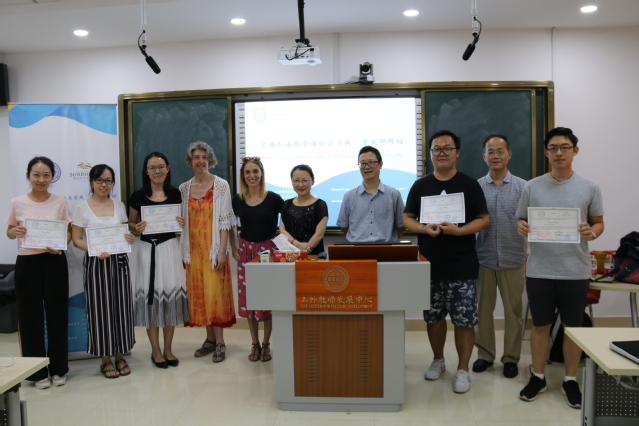上海外国语大学法语系和法国新索邦-巴黎第三大学,根据两校法语教师职业培训框架协议,于2018年7月10日至14日,共同举办了首期“法语外语教学理论与实践暑期研修班”。此次培训由法国驻沪总领事馆、教育部外指委法语分委会及中国法语教学研究会协办,并得到了上海外语教育出版社的支持。