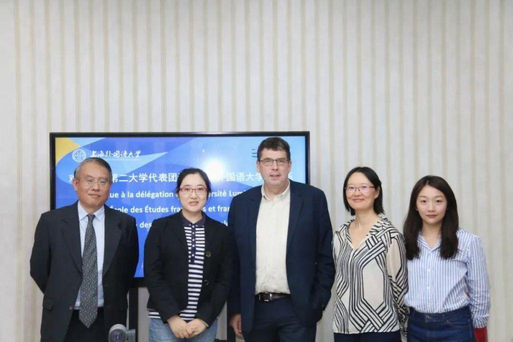 11月2日,法国里昂第二大学副校长吉姆·沃克(Jim WALKER)一行访问上海外国语大学法语系,外事分管副主任王蓓丽、外事秘书颜姝婷在松江校区会见来宾。