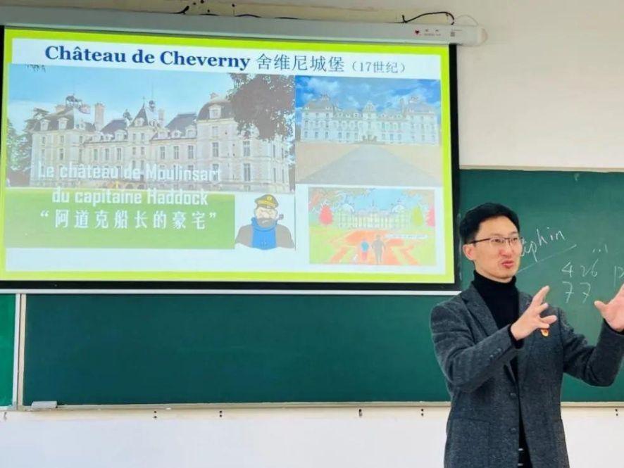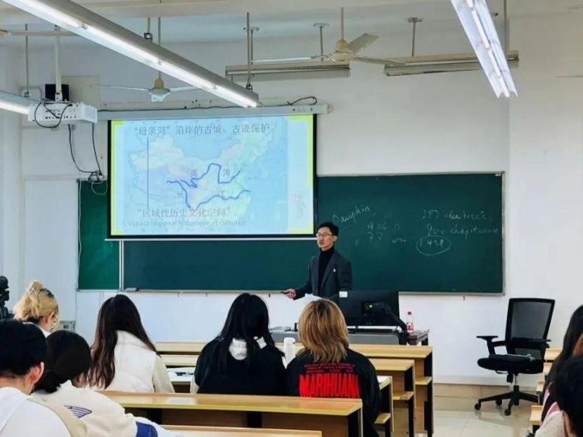 20231115日上午,上海外国语大学法语系2023秋季学期“课程思政”公开课——法国概况在松江校区3202教室顺利举办。