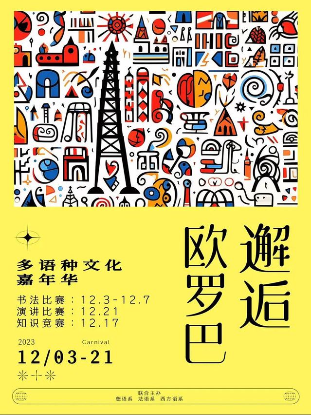学习语言知识,体验异域风情,展现自我才能,拓展国际视野,展现文化魅力,第三届“邂逅欧罗巴”多语文化嘉年华活动即将拉开帷幕。法语系,德语系,西方语系共同为大家带来以下精彩活动:
