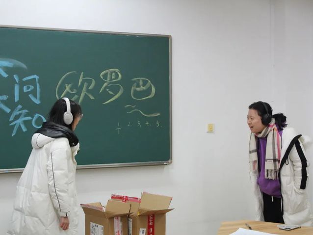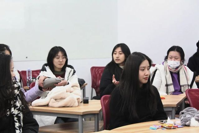 第二个环节“击鼓传花”的现场更是彰显着青春激情,同学们的眼神紧随“花”的移动,双手快速而有序地传递。竞赛过程如火如荼,气氛热烈而又紧张。