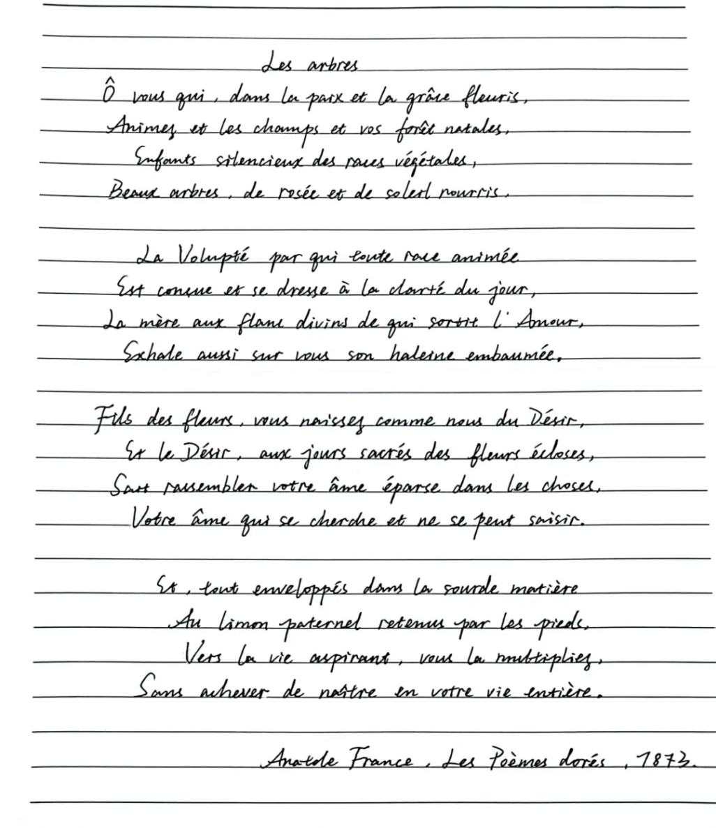 好诗配好字。在这个春天里,法语系的同学们沐浴着美好的春光,满怀着对于春天的赞美,写下一串串优美的文字,用笔尖描绘着盎然春意。