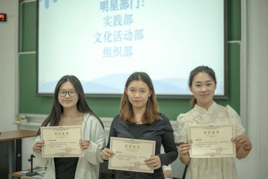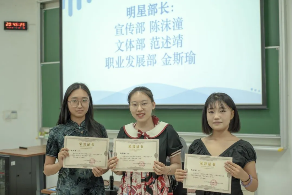 经过前期综合评估、团委书记及主席团投票,大会公布了2023-2024学年第二学期法语系团委、学生会“明星部门”、“明星部长”以及“明星部员”的名单,并为他们颁奖。
