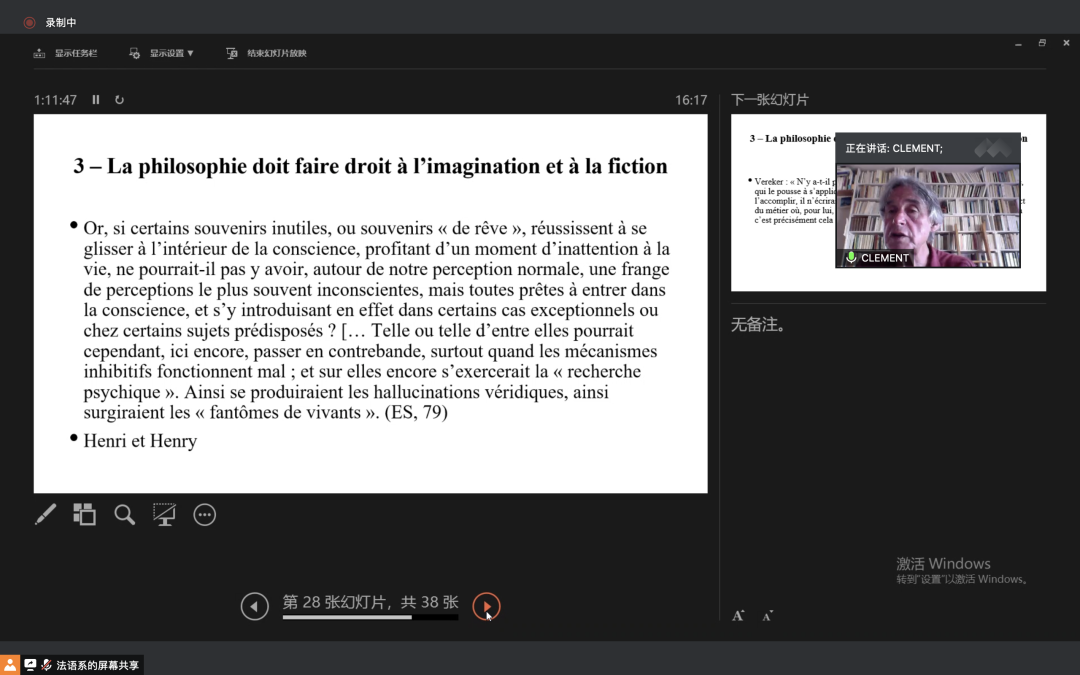 在讲座的第三部分,Bruno CLÉMENT教授重点探讨了想象与虚构在哲学中的重要性。