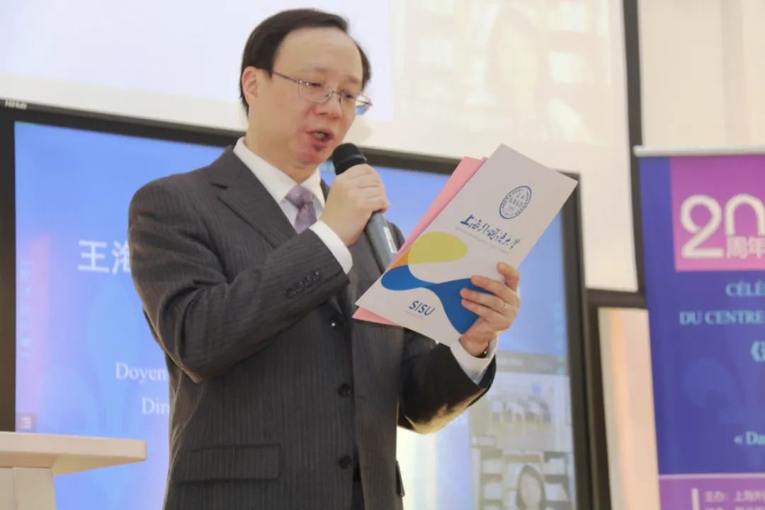 孔以恒先生对出席本次庆祝活动感到非常荣幸,并向魁北克研究中心致以衷心的祝贺。他表示,魁北克政府驻沪办事处将一如既往地支持中心的发展,希望此次文学作品分享会能够加深同学们对法语语言文学的研究兴趣,激励同学们深入研究包括魁北克在内的法语国家地区的语言文化。最后,他再次祝贺魁北克研究中心成立20周年,祝愿中心以此为新起点继续不断开拓发展。