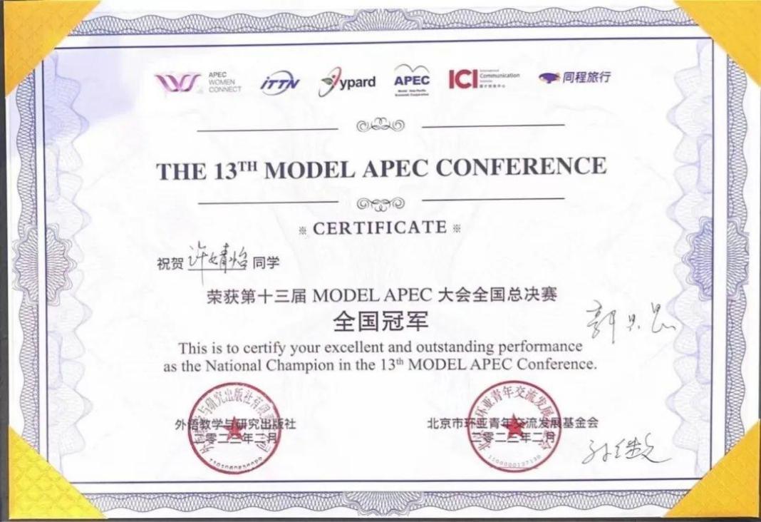 【喜报】喜报 | 我系许婧怡同学在第十三届APEC大赛中荣获全国总冠军