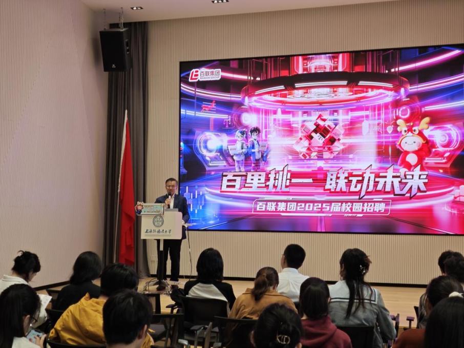 10月22日下午,百联集团有限公司党委副书记、总裁,法语系校友分会副会长,1991届校友濮韶华返校,亲自为百联集团“百里挑一 联动未来”2025届校园招聘活动站台宣讲,为上外学子提供广阔的职业发展平台。