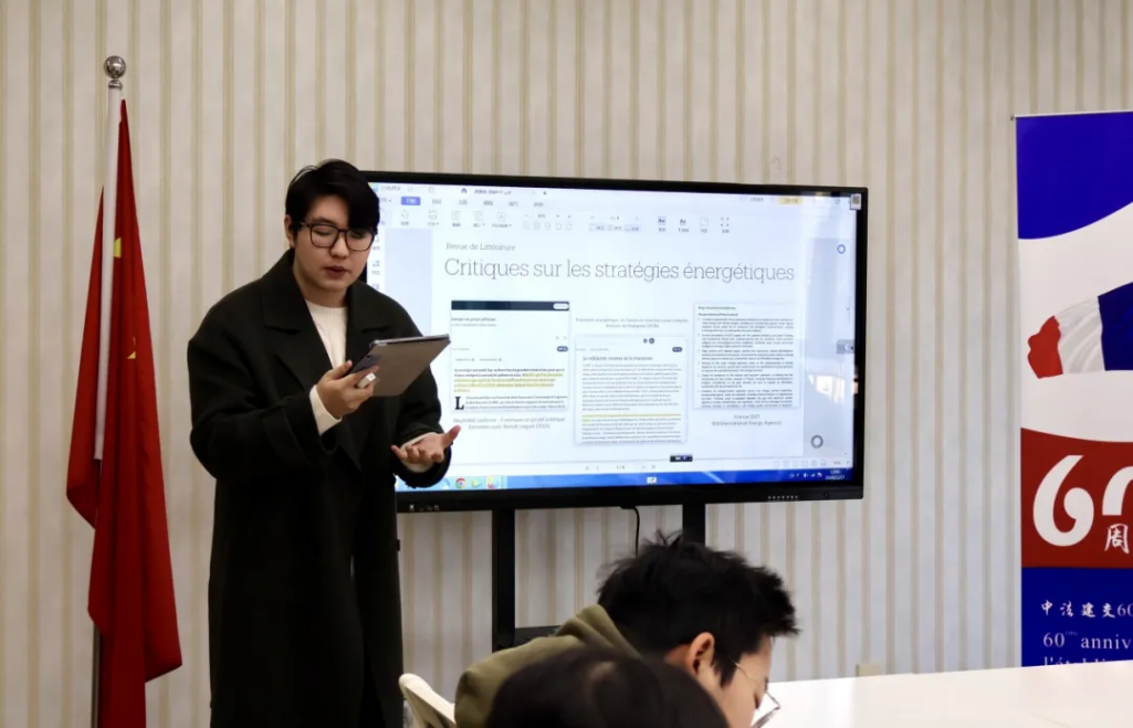 周展锐同学以《能源自主:法国实现碳中和的关键》(Souveraineté énergétique : enjeu majeur de la neutralité carbone en France)为题,聚焦能源自主,深入探究了法国实现碳中和进程中的关键策略与技术路径,为推动法国乃至当今世界的可持续发展提出了颇有见地的策略。