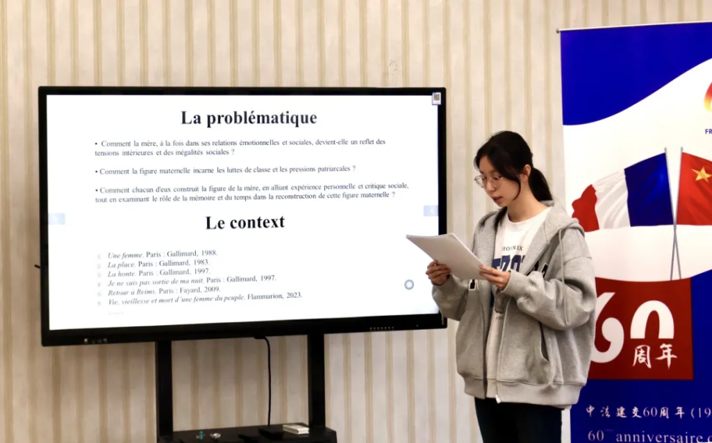 王筱棠同学以《自传中的他者:安妮·埃尔诺和迪迪埃·埃里蓬作品中的母亲形象比较》(L’autre dans l’autobiographie : une comparaison des figures maternelles dans les œuvres d’Annie Ernaux et de Didier Eribon)为题,细致探讨了两位法国当代作家的自传和自撰文本中的母亲这一“他者”形象。