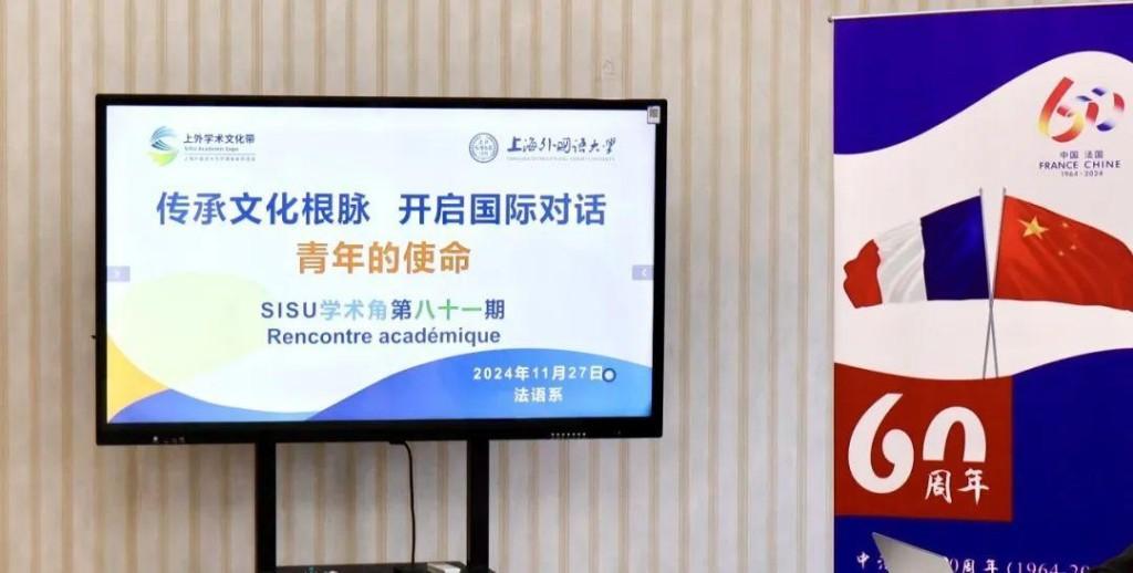20241127日(周三)下午,由法语系承办的SISU学术文化带第八十一期学术角在松江校区成功举行。本期学术角围绕 “传承文化根脉,开启国际对话:青年的使命”主题,邀请法语20219位同学开展热烈研讨,展开了一场思想和学术的交流盛宴,王圆圆、刘莹莹、陈嘉琨三位专业教师担任专家点评,其他年级同学到场观摩学习。