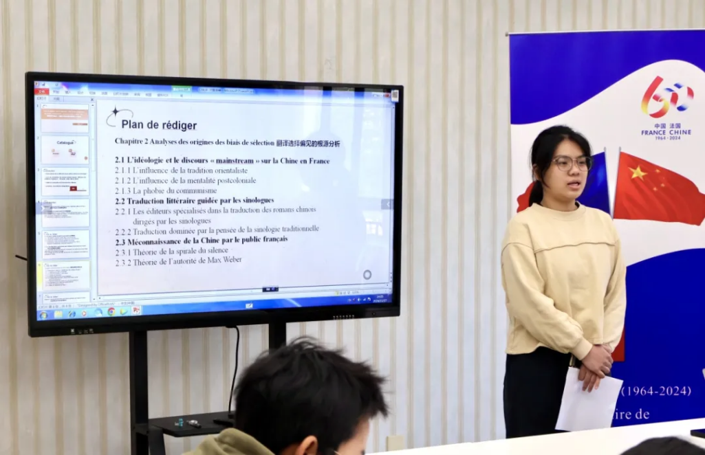 段雅文同学以《翻译选择中的偏见:中国当代小说在法国的呈现研究(1990年起)》[Biais de sélection dans la traduction : étude de la représentation des romans contemporains chinois en France (depuis 1990)]为题,深入分析了法国译者和出版者在翻译、出版中国当代小说过程中的存在的倾向与偏见,为中国文学更好地“走出去”提出了若干见解。