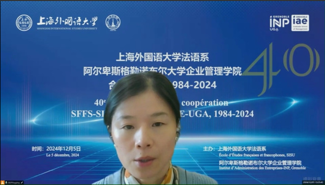 在中法建交60周年及庆祝上海外国语大学建校75周年之际,2024125日“新时代‘法语+’人才培养体系改革与发展”国际研讨会暨上海外国语大学与阿尔卑斯格勒诺布尔大学国立综合理工学院-企业管理学院(以下简称格勒企业管理学院)合作四十周年庆典在线举行。