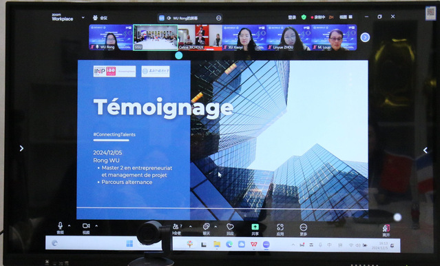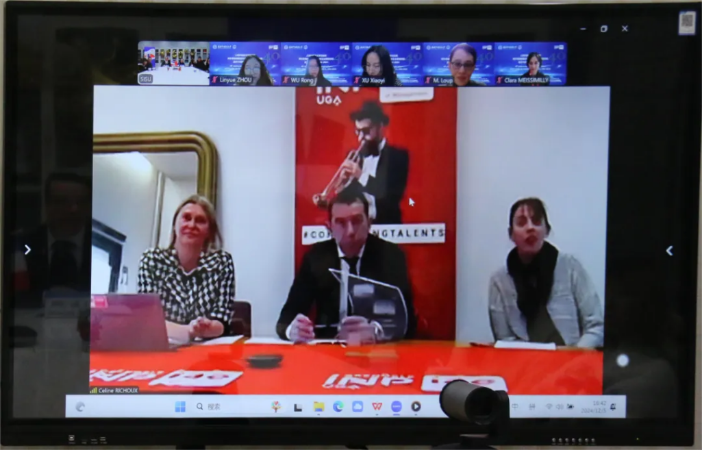 格勒企业管理学院副院长Frédéric Bertrand首先分享了国际联合培养项目建立的经验。他指出,合作双方在人才培养目标上的一致性,以及合作国家间文化上的相互理解和信任,是构建有效合作的重要支撑。项目法方负责人Caroline Tarillon就跨学科合作进行分享,她认为跨专业培养对学生的学业和职业生涯皆有很大帮助,两校建立的“3+2”项目就是跨学科培养的良好典范;国际事务负责人Céline Richoux就跨文化交际能力培养分享了自己的见解,强调了多元文化融合的重要性,同时也介绍了格勒企业管理学院在帮助学生适应留法生活上的经验做法。