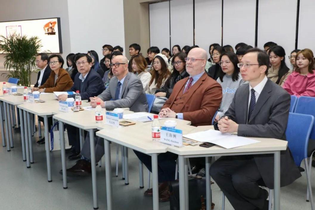 加拿大驻上海总领事馆政治经济与公共事务领事隆克理(Christopher Loan)用中、法、英三语向师生们生动展示了蒙特利尔语言和文化的多元性、多样性和包容性,并表示希望通过本次展览,大家能够感受到蒙特利尔独有的文化魅力。
