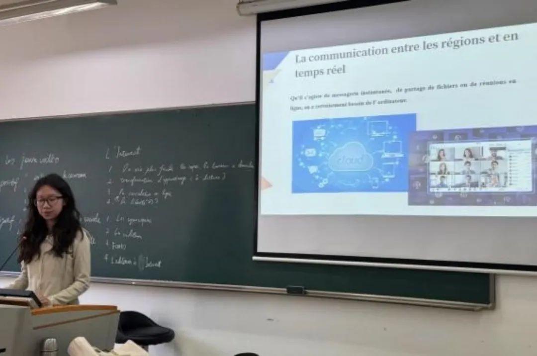 首先,白睿老师带领同学们重新梳理了课文中核心的法语表达,对于课文的内容进行了复述。随后,同学们围绕以下四个问题展开了热烈的讨论:电脑对世界带来的改变;网络对生活产生的影响;电子游戏对于身心健康的影响;如何有效预防和解决游戏上瘾症。同学们分为四个小组,每个小组选取一个主题,通过查找资料、团队协作、集体展示的形式分享了各自的研究成果。白睿老师结合语言规划表述、论证的客观性与逻辑性进行点评,引导同学们超越表象,深入探讨技术伦理与社会责任。