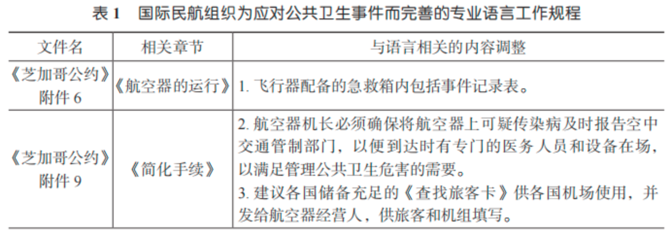 (一)国际民航组织应对公共卫生事件的语言工作机制