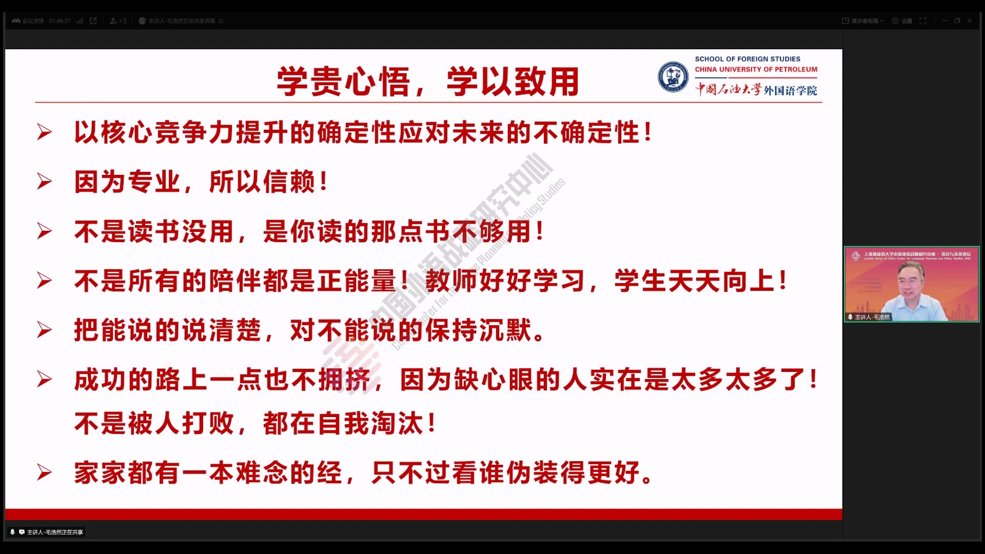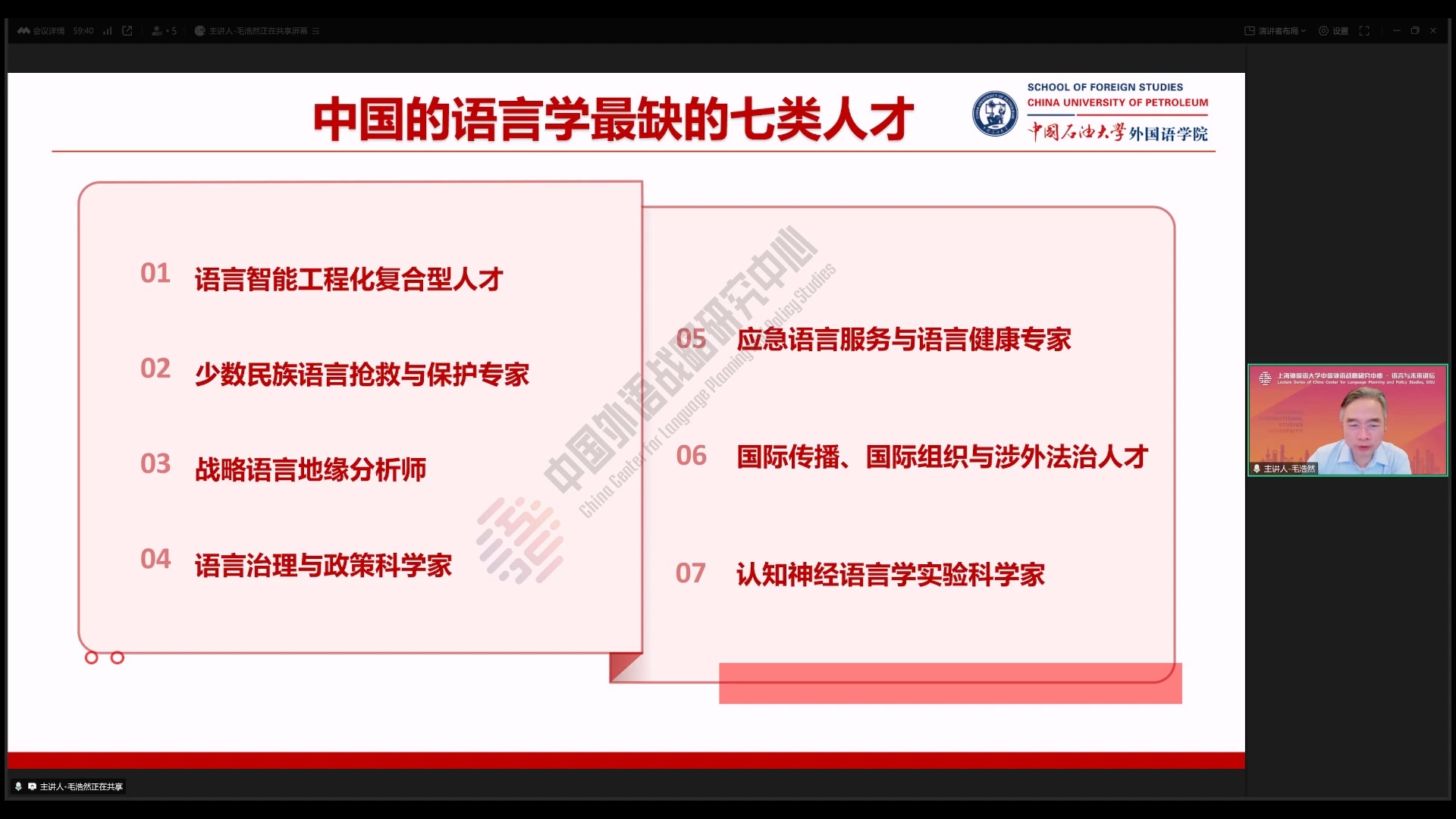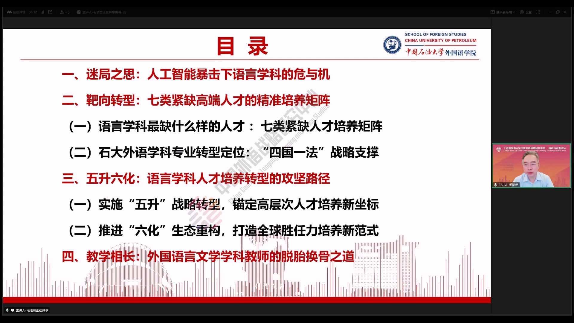 毛浩然于中国外语战略研究中心“语言与未来讲坛”谈人工智能暴击下的语言学科转型