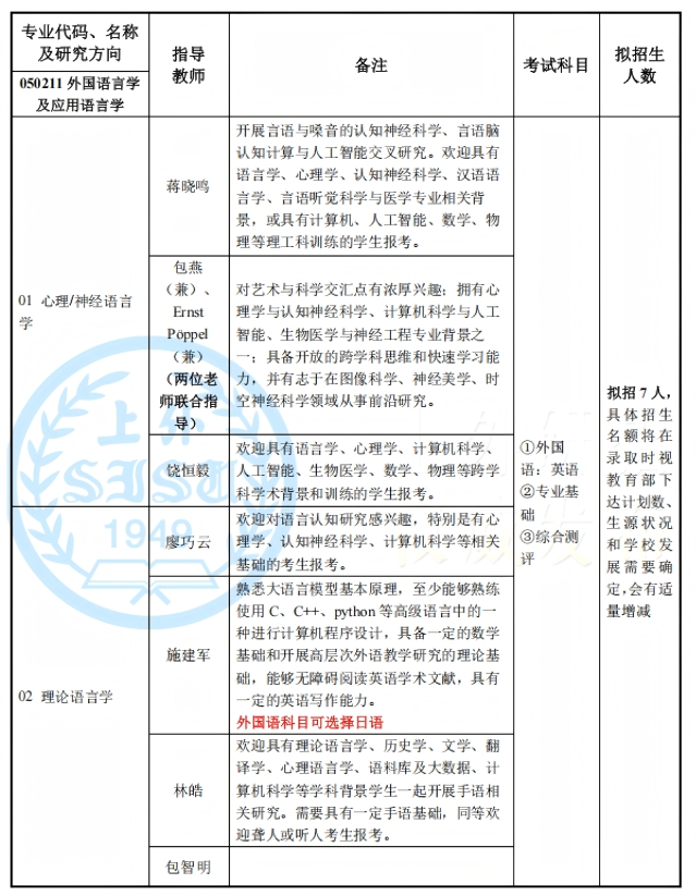 具体招生细则请查阅上海外国语大学语言研究院2025年博士研究生招生“申请—考核”制实施细则。