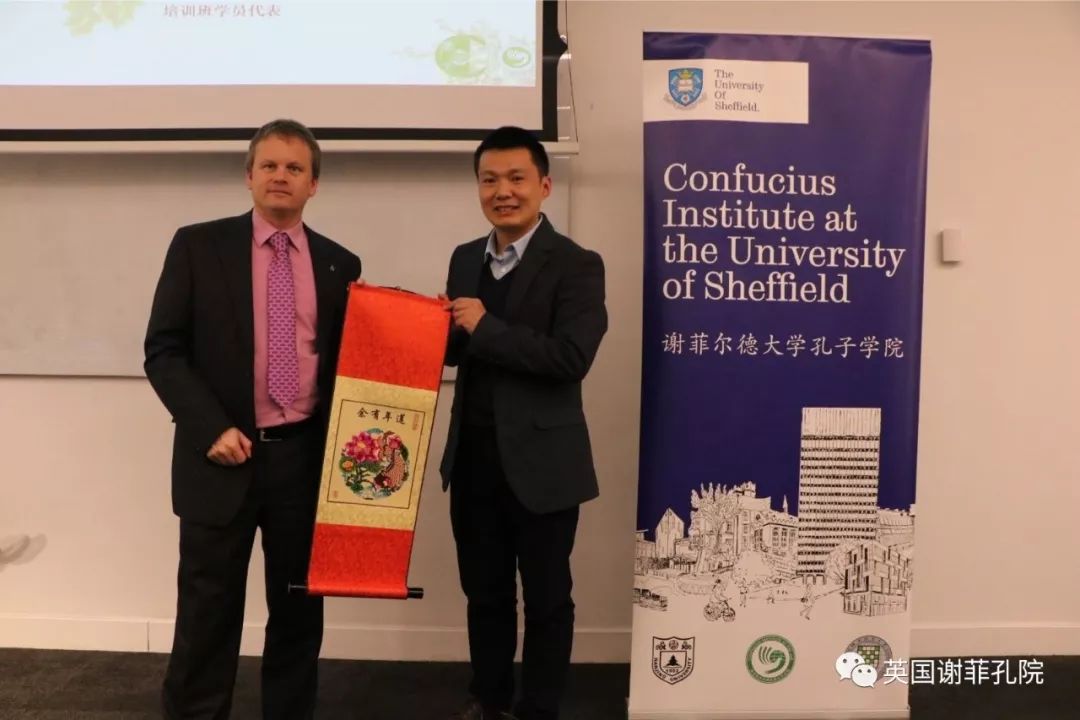 培训班班长陈长书老师代表学员向谢菲尔德大学校方赠送礼物