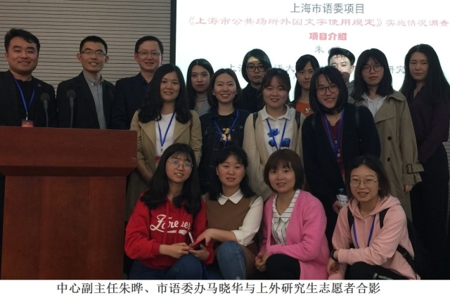 上海外国语大学中国外语战略研究中心作为国家语委首家科研基地、国家语言文字智库试点单位之一,长期以来积极参与国家和地方语委的相关工作。如今,由中心组织的研究生志愿者团队继续秉承上外学生志愿者的优良传统,充分发挥专长,前期工作得到了市语委领导的高度肯定。借市级“啄木鸟”志愿者服务队成立的契机,上外学子将继续通过社会服务关注民生、学以致用。(语言研究院、中国外语战略研究中心)