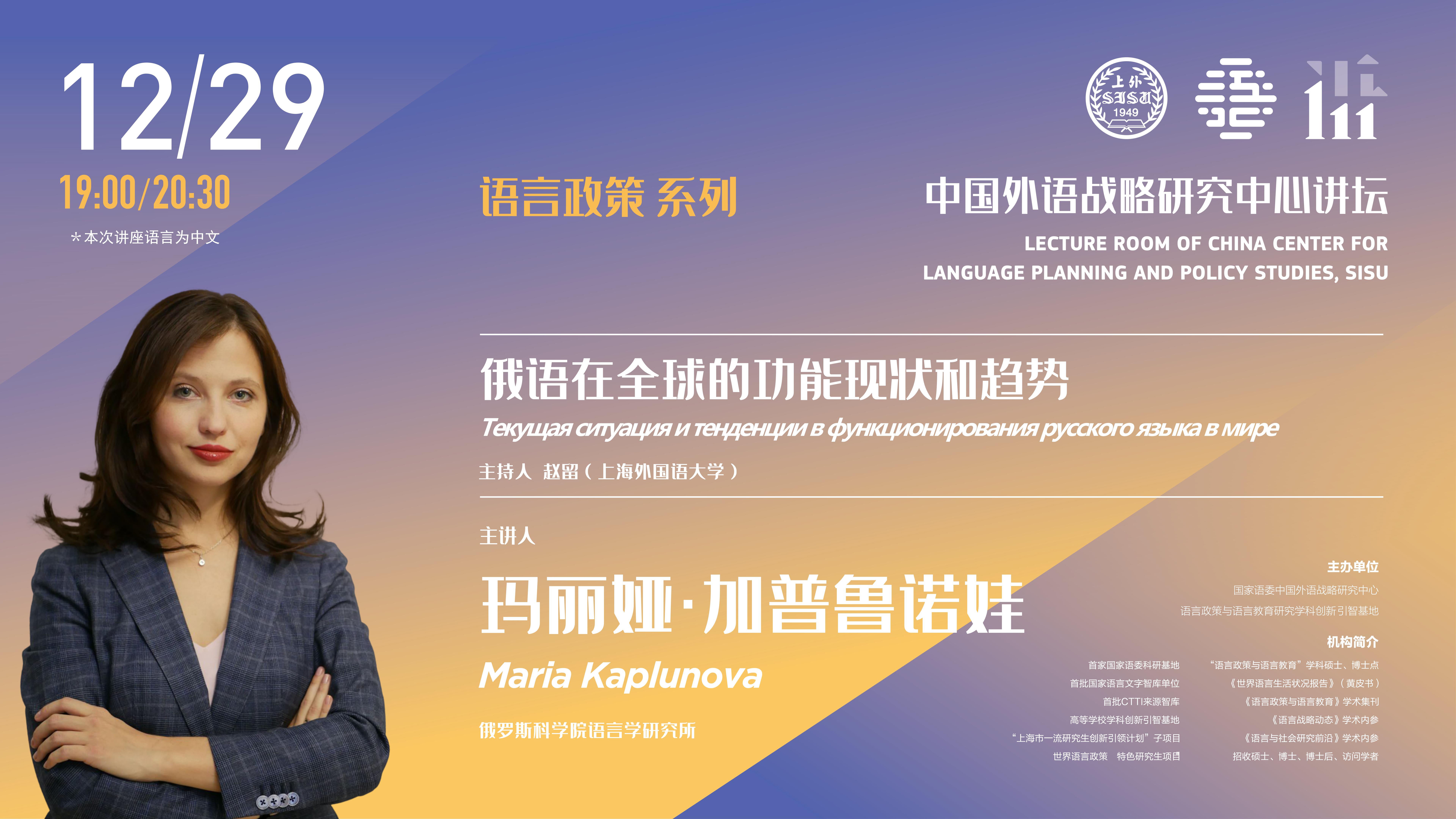 讲座 | 玛丽娅·加普鲁诺娃:俄语在全球的功能现状和趋势