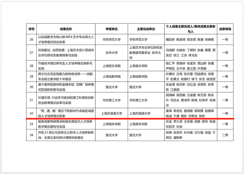 承担“语言政策与语言教育”学科建设和区域国别特色研究生项目(世界语言政策)运维,形成可供推广与复制的“集成治理模式”,在高层次人才培养中充分体现“跨学科、跨语种、跨专业、跨行业、跨国界”的资源整合与协同创新特征,作为主要参与者的教学成果获得2022年上海市高等教育研究生优秀教学成果奖一等奖。