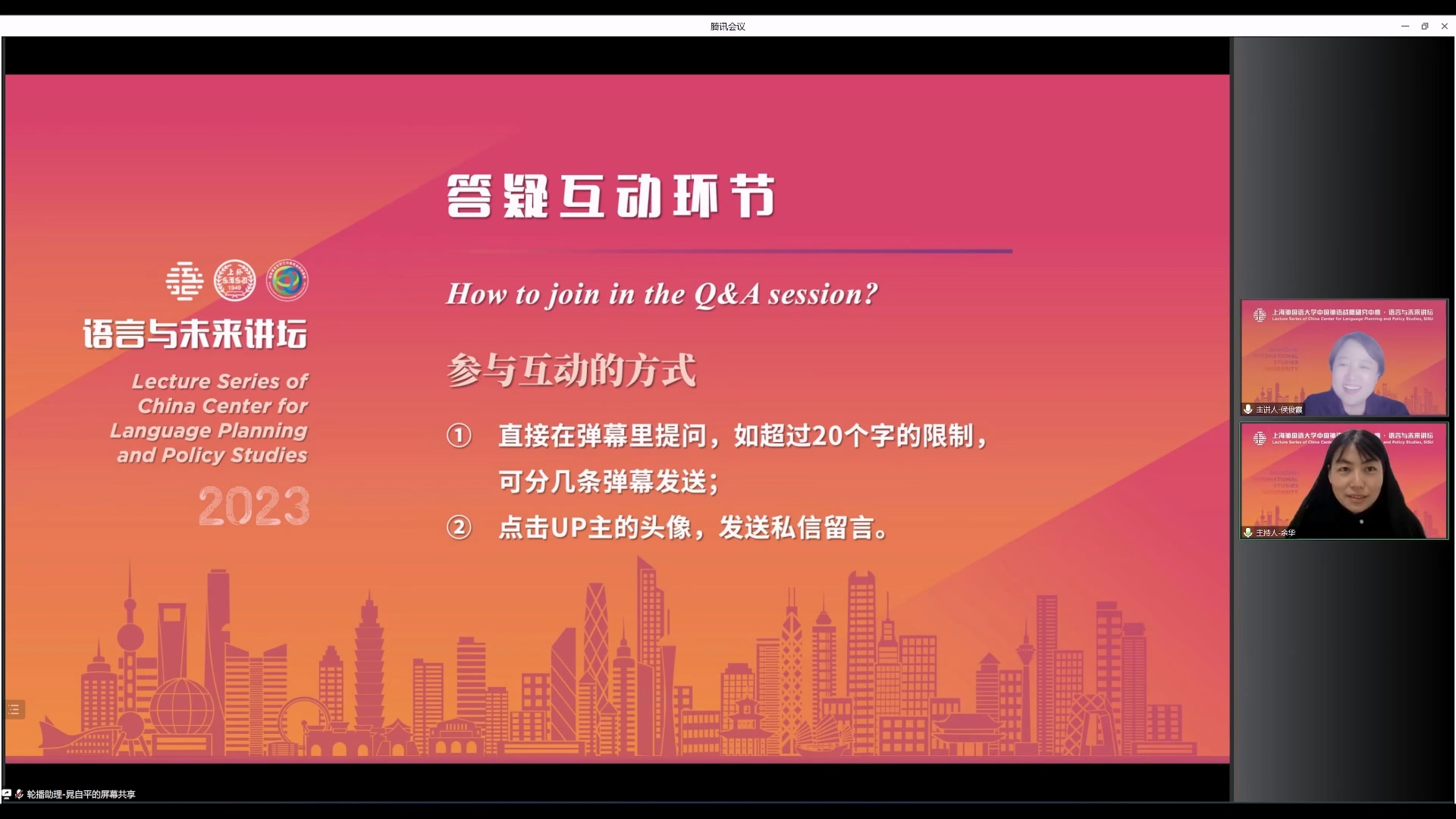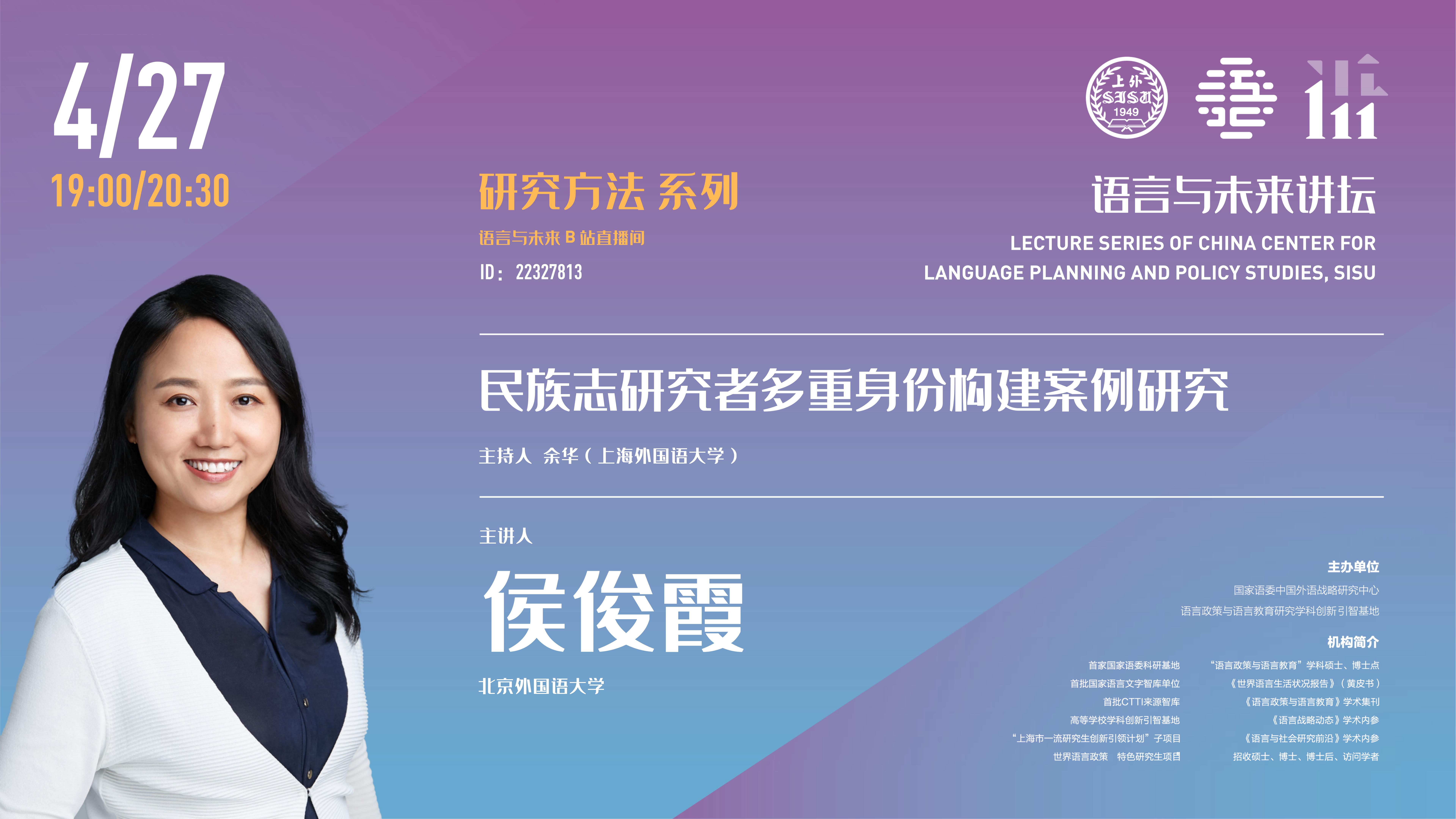 2023年4月27日,北京外国语大学专门用途英语学院院长、新疆大学“天山学者”特聘教授、博士生导师侯俊霞教授做客“中国外语战略研究中心讲坛”,做了题为《民族志研究者多重身份构建案例研究》的学术讲座。讲座由中国外语战略研究中心副主任余华副教授主持,400余位观众线上参加。